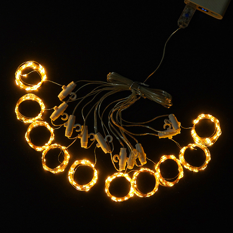 Plug Flat plug、round plug optional or solar energy Application Wedding backdrop, hotels, restaurants, home interiors, shop windows, etc. Material Plastic, copper wire, electronic components, etc. Weight 300g Power source Available in battery-powered or USB-powered versions, with optional remote control.